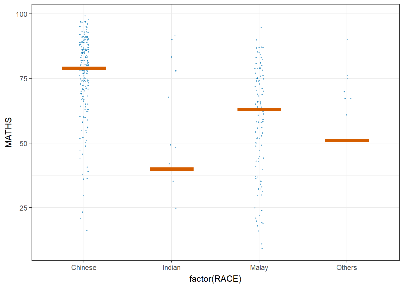 (aes(x = factor(RACE), y = MATHS))) +